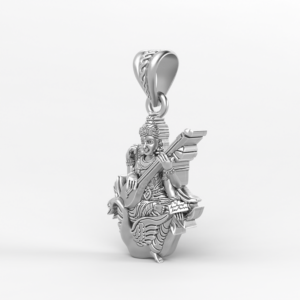 Saraswati Mata Pendant in 925 Silver – Embrace Wisdom, Art & Purity